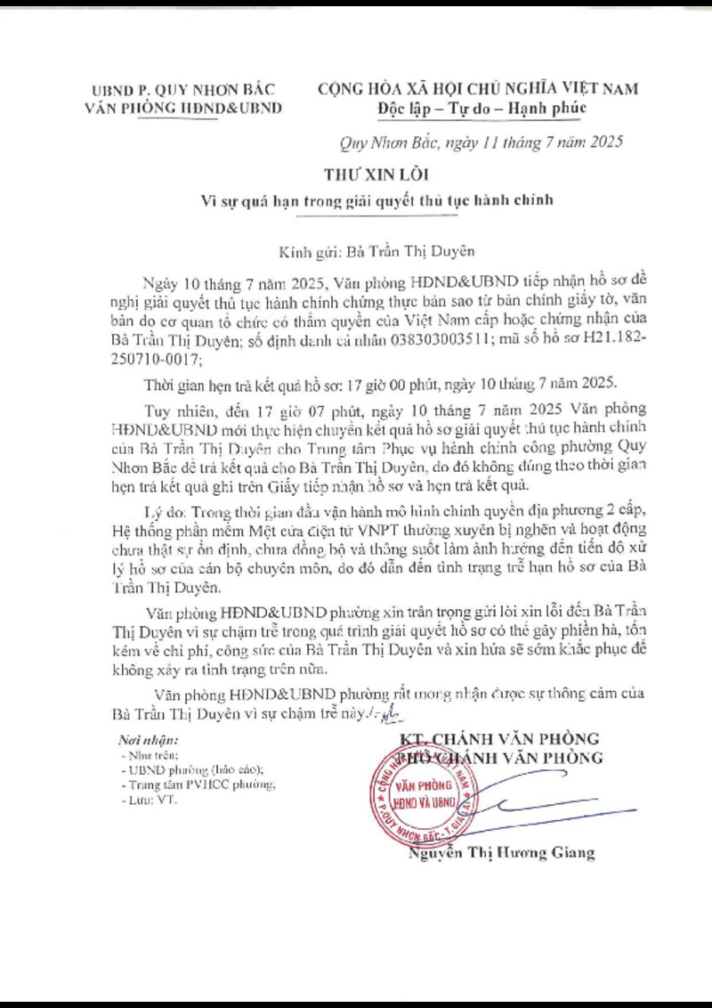 Thư xin lỗi bà Trần Thị Duyên 13/10/2025, 09:29:50 - Lượt xem: 4 Tweet Thêm vào danh sách Báo xấu Thông tin tài liệu Thư xin lỗi bà Trần Thị Duyên