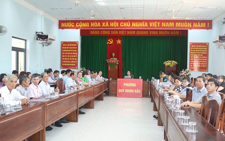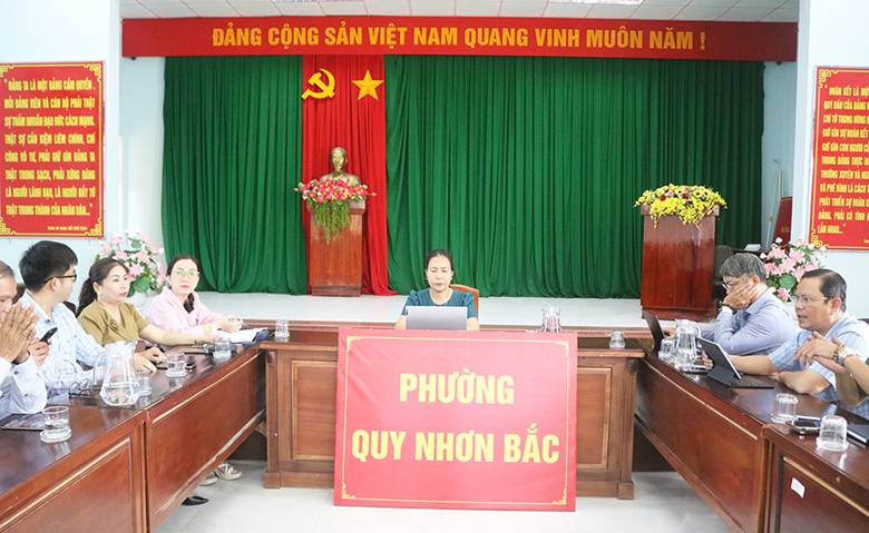 Dự tại điểm cầu trực tuyến phường Quy Nhơn Bắc, có các đồng chí: Trần Thị Như Hoa - Bí thư Đảng ủy, Chủ tịch HĐND phường; Hồ Thị Kim Ngọc - Phó Bí thư Thường trực Đảng ủy phường; Nguyễn Thái Diễn - Phó Bí thư Đảng ủy, Chủ tịch UBND phường Quy Nhơn Bắc; các đồng chí nguyên Tỉnh ủy viên, nguyên lãnh đạo thành phố Quy Nhơn (cũ) đang sinh sống trên địa bàn phường Quy Nhơn Bắc, nguyên lãnh đạo phường Nhơn Phú (cũ), phường Trần Quang Diệu (cũ); các đồng chí Ủy viên Ban Chấp hành Đảng bộ phường; Chủ tịch, Phó Chủ tịch MTTQ Việt Nam phường, Ủy viên Ủy ban kiểm tra Đảng ủy phường; Trưởng, phó các phòng, ban và đơn vị phường; cán bộ, đảng viên của cơ quan Đảng ủy, chính quyền phường; Bí thư chi bộ, Trưởng, Phó các khu phố; Hiệu trưởng, Phó Hiệu trưởng các trường học trên địa bàn phường Quy Nhơn Bắc...