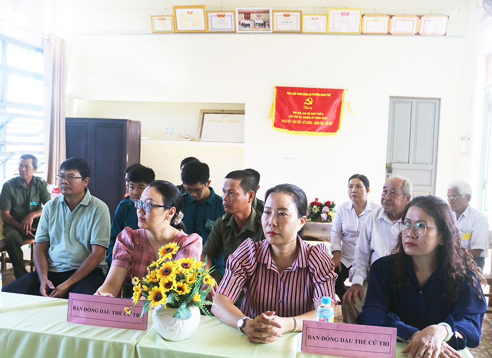 (thứ 2 từ phải sang) dự khai mạc bầu cử Trưởng khu phố tại khu phố 6