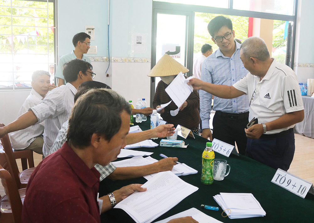 Cử tri nghiên cứu thông tin nhân sự được giới thiệu ứng cử Trưởng khu phố