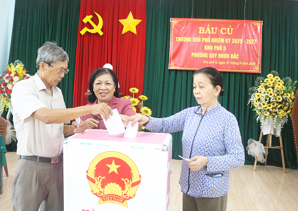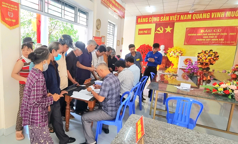 Ngày 21/9, cử tri đại diện hộ gia đình của 16 khu phố trên địa bàn phường Quy Nhơn Bắc nô nức đi bầu cử Trưởng khu phố, nhiệm kỳ 2025-2027, phát huy quyền làm chủ, thực hiện nghĩa vụ công dân. Cuộc bầu cử là đợt sinh hoạt chính trị sâu rộng trong nhân dân, là ngày hội toàn dân để lựa chọn những người đủ điều kiện tiêu chuẩn về đạo đức, phẩm chất, năng lực, có uy tín trong cộng đồng dân cư, nhiệt tình và tâm huyết với công tác ở khu phố.