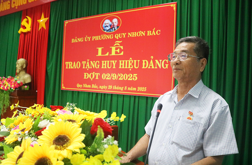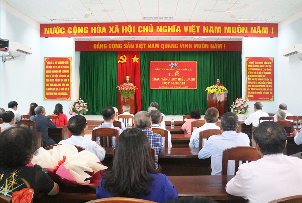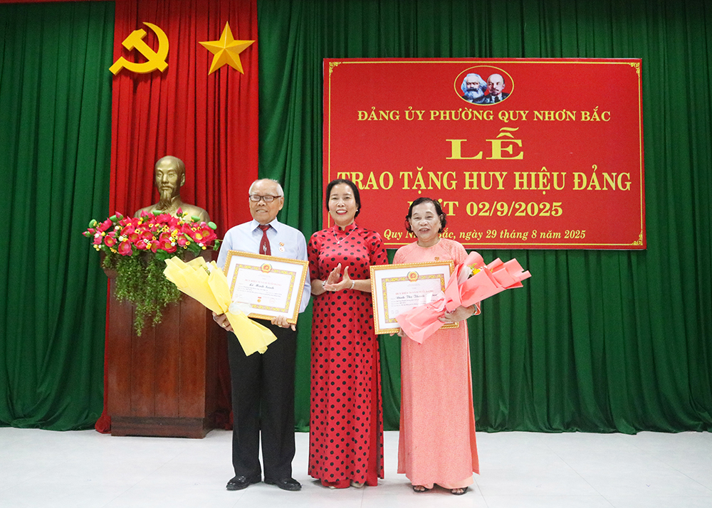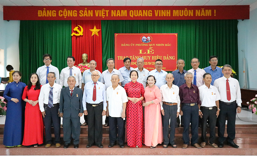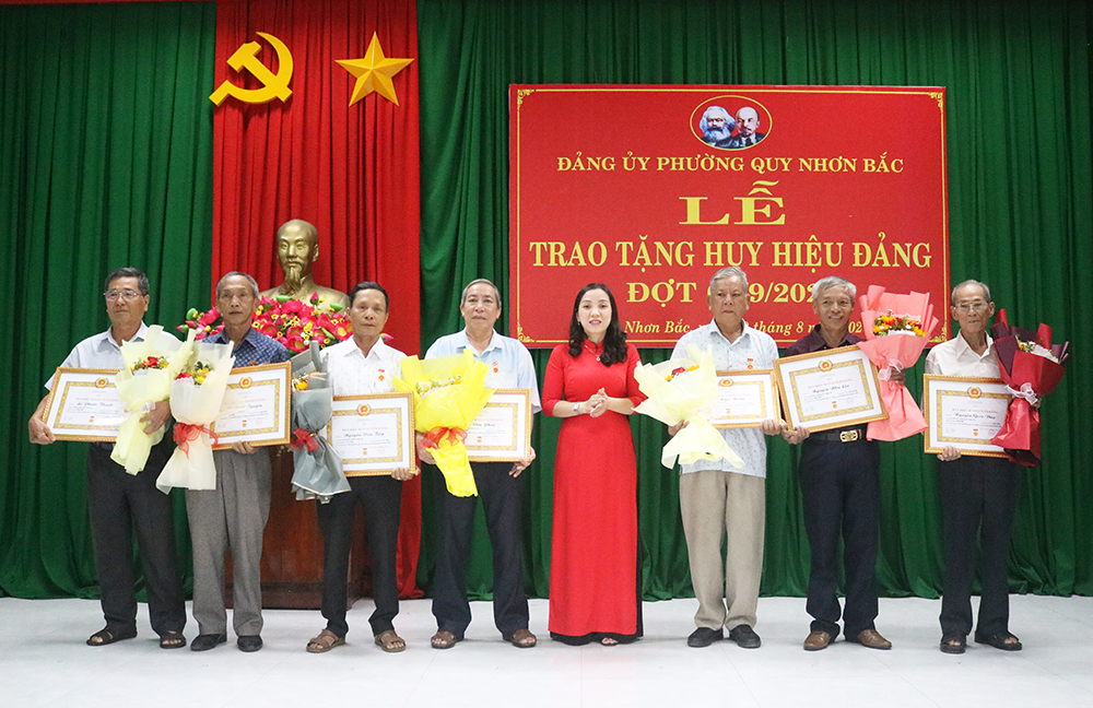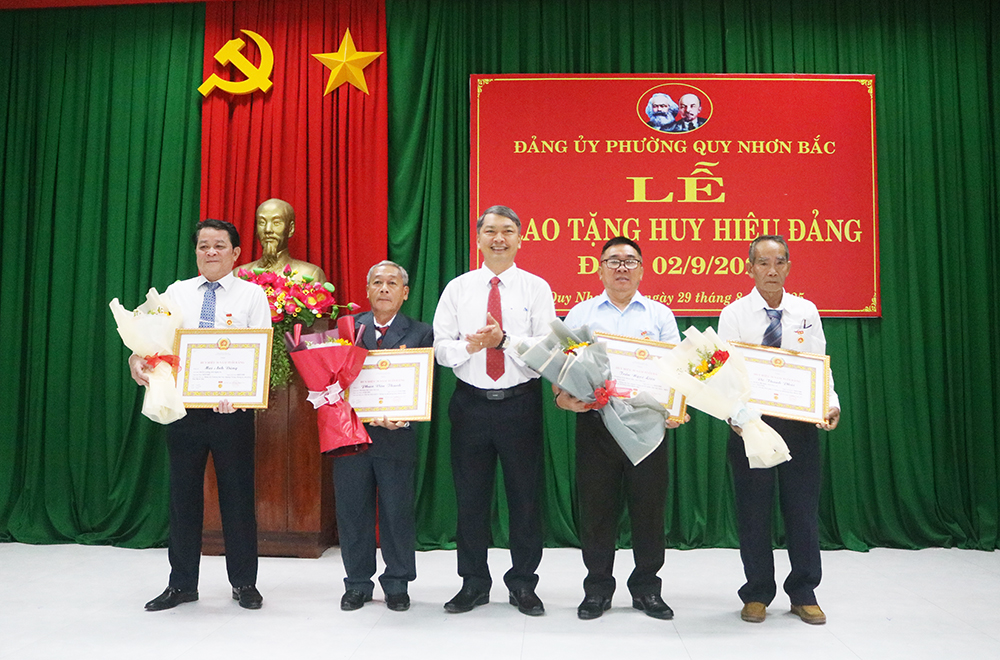 Tại buổi lễ, Ban Thường vụ Đảng ủy phường Quy Nhơn Bắc trao tặng Huy hiệu Đảng cho 16 đồng chí đảng viên; gồm 1 đảng viên được tặng Huy hiệu Đảng 60 năm, 3 đảng viên nhận Huy hiệu Đảng 50 năm, 1 đảng viên nhận Huy hiệu Đảng 45 năm, 7 đảng viên nhận Huy hiệu Đảng 40 năm, 4 đảng viên nhận Huy hiệu Đảng 30 năm.