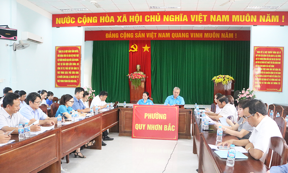 Sáng 18/9, Công đoàn phường Quy Nhơn Bắc tổ chức Hội nghị Ban Chấp hành Công đoàn phường (mở rộng) lần thứ I, nhiệm kỳ 2023-2028. Dự và chỉ đạo hội nghị có các đồng chí: Nguyễn Đức Long - Phó Trưởng ban Ban Công tác Công đoàn Cơ quan Ủy ban MTTQ Việt Nam tỉnh Gia Lai; Hồ Thị Kim Ngọc - Phó Bí thư Thường trực Đảng ủy phường Quy Nhơn Bắc.
