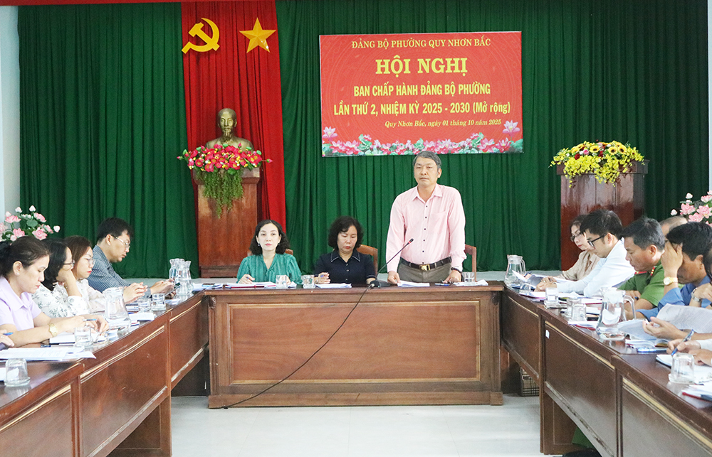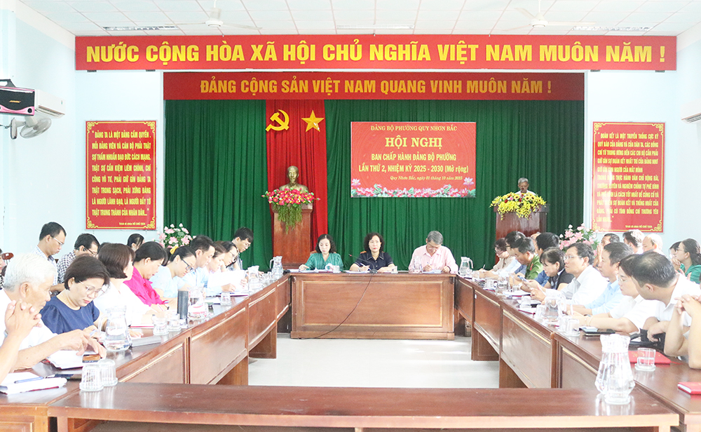 Sáng 01/10, Đảng ủy phường Quy Nhơn Bắc tổ chức Hội nghị Ban Chấp hành Đảng bộ (mở rộng) lần thứ 2, nhiệm kỳ 2025-2030 nhằm sơ kết tình hình thực hiện nhiệm vụ quý III và triển khai phương hướng, nhiệm vụ, giải pháp trọng tâm quý IV năm 2025.