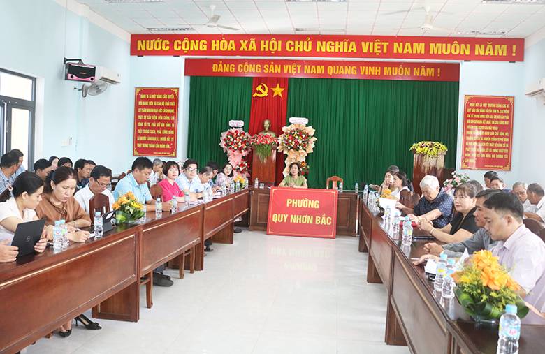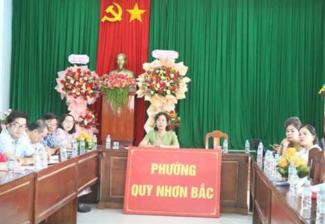 Dự tại điểm cầu trực tuyến phường Quy Nhơn Bắc, có các đồng chí: Trần Thị Như Hoa - Bí thư Đảng ủy, Chủ tịch HĐND phường; Hồ Thị Kim Ngọc - Phó Bí thư Thường trực Đảng ủy phường; Nguyễn Thái Diễn - Phó Bí thư Đảng ủy, Chủ tịch UBND phường; các đồng chí thành viên Ban chỉ đạo bầu cử phường, thành viên Ủy ban bầu cử phường; lãnh đạo các Ban HĐND phường; lãnh đạo các phòng, ban chuyên môn UBND phường; chuyên viên các phòng, ban chuyên môn được phân công tham mưu công tác bầu cử; các đồng chí Bí thư chi bộ, Trưởng khu phố, Trưởng Ban công tác mặt trận 16 khu phố...