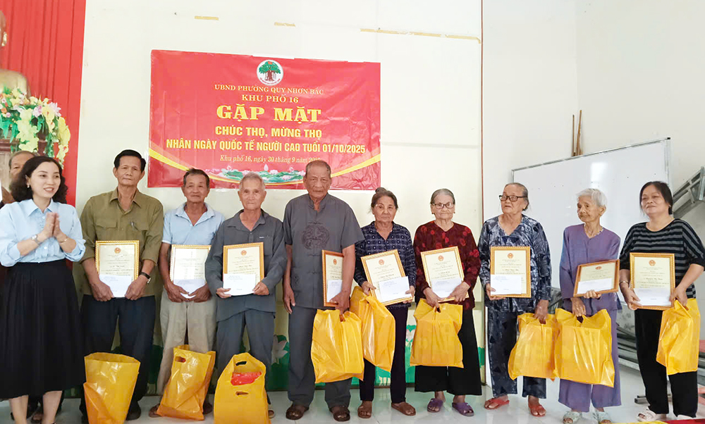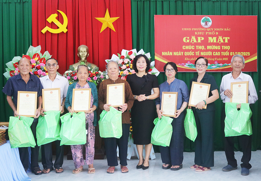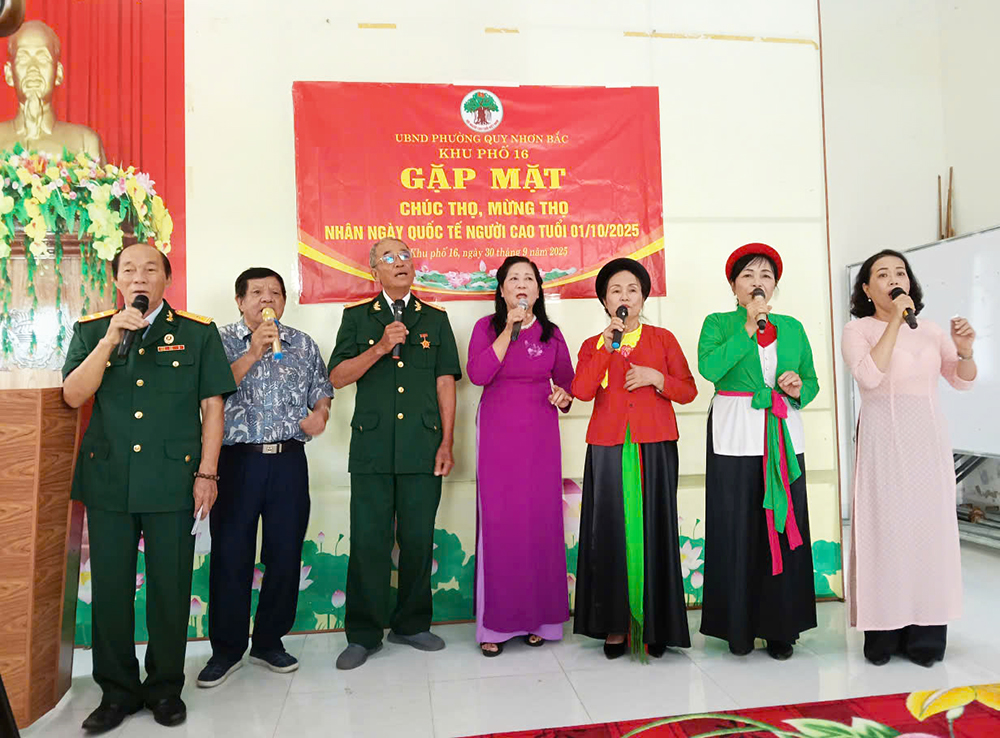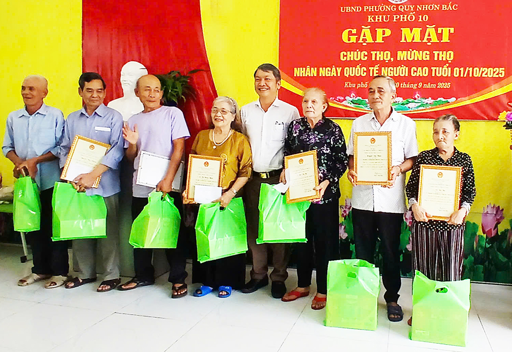Ngày 30/9, UBND phường Quy Nhơn Bắc tổ chức gặp mặt chúc thọ, mừng thọ người cao tuổi trên địa bàn phường nhân kỷ niệm 35 năm Ngày Quốc tế Người cao tuổi (01/10/1991 - 01/10/2025) và Tháng hành động vì người cao tuổi Việt Nam. Hoạt động ý nghĩa được tổ chức tại 16 khu phố trên địa bàn phường. Các đồng chí lãnh đạo phường Quy Nhơn Bắc đã tổ chức nhiều đoàn đến các khu phố để chúc thọ, mừng thọ người cao tuổi địa phương.