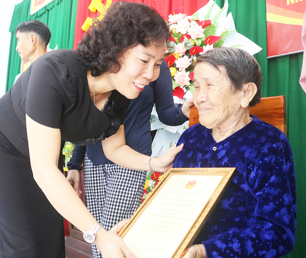 khi được đồng chí Bí thư Trần Thị Như Hoa trao tặng Thiếp mừng thọ