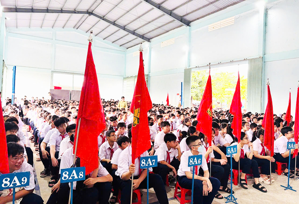 Buổi tuyên truyền thu hút sự quan tâm lắng nghe của các em học sinh